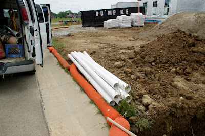 Also, the insulation crew was in and nearly finished the job today. They needed scaffolding to put the batting in the ceiling over the family room. They didn't have room on the truck for all the insulation and scaffolding so they will be coming out on Monday to finish. Not an issues seeing how our framing inspection isn't until Tuesday.
